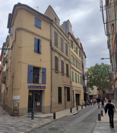 Bien située au coeur de Perpignan dans une rue passante (véhicules et piétons) à deux pas de la place de la République.