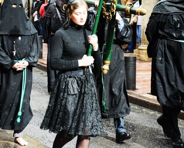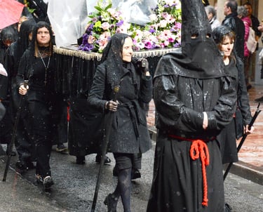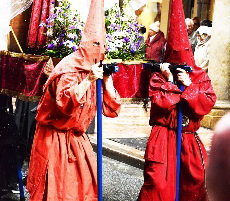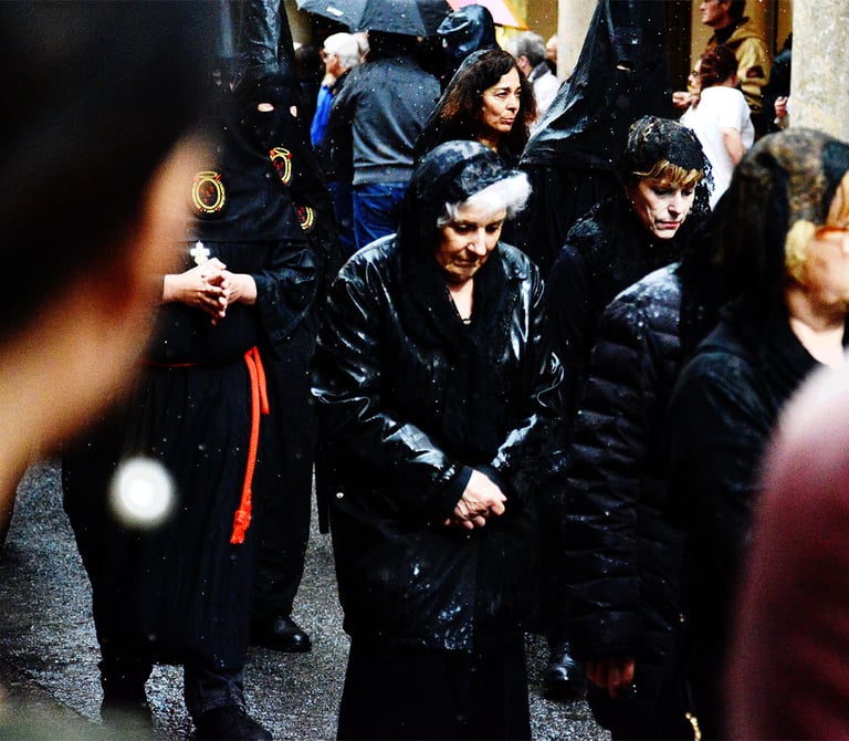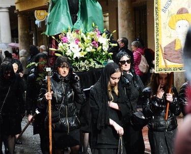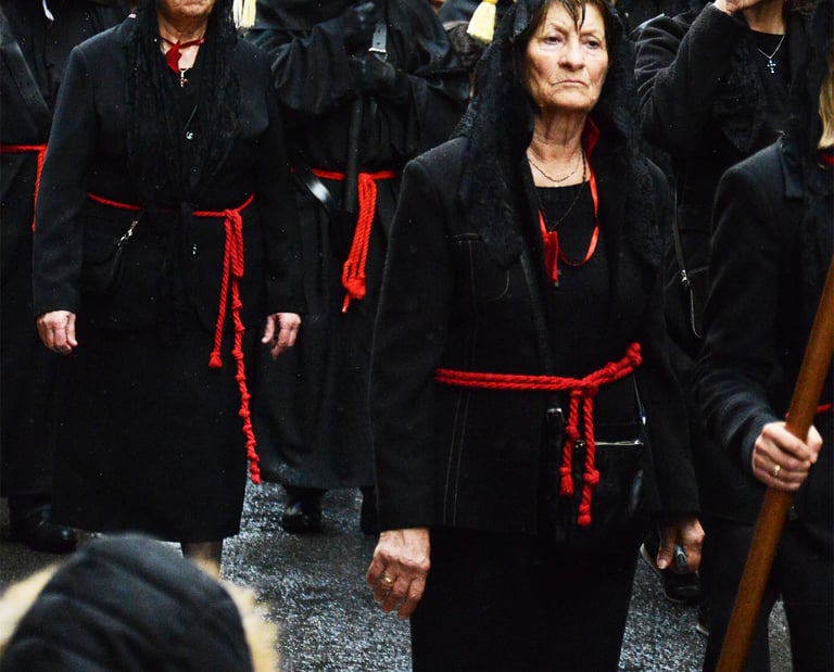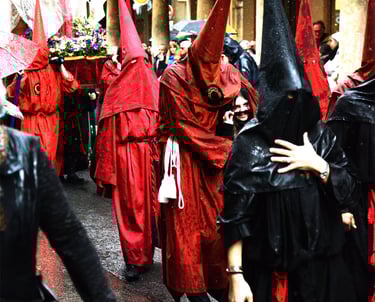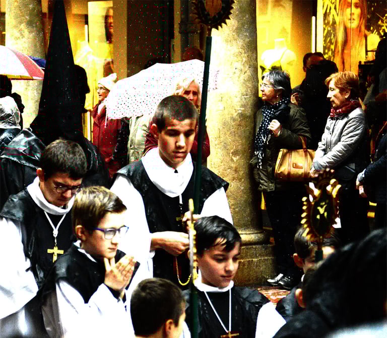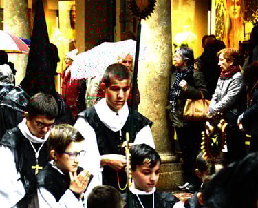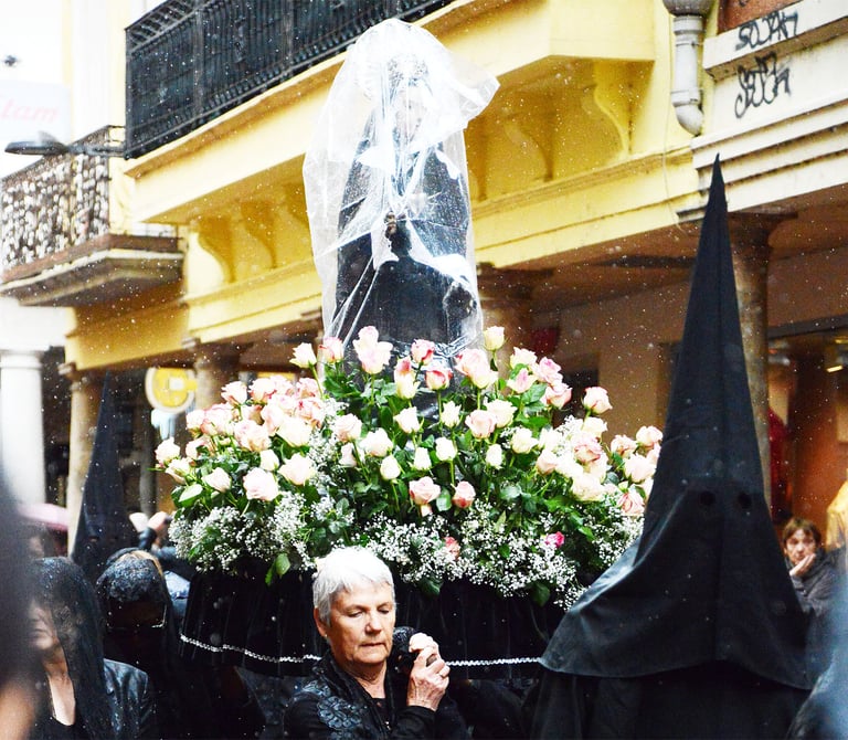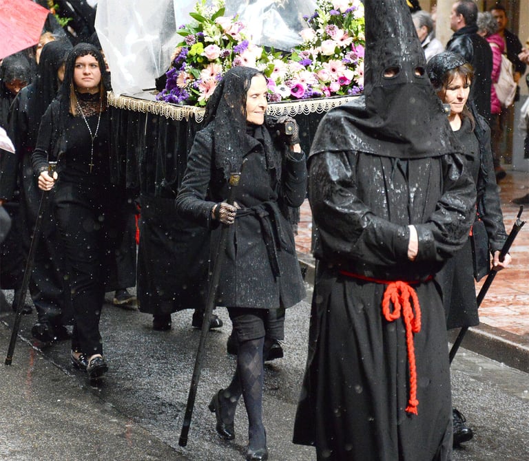 Tous les ans au cours de la semaine Sainte Catholique, le vendredi de la semaine se déroule dans les rues de Perpignan La Sanch. Procession de pénitents portants des fardeaux. Portants de longues capuches pointant vers le ciel. Souvent pieds nus ils défilent au rythme de la cloche de fer du pénitent rouge en tête du cortège. Des roulements de tambours rythmes les haltes de la marche...