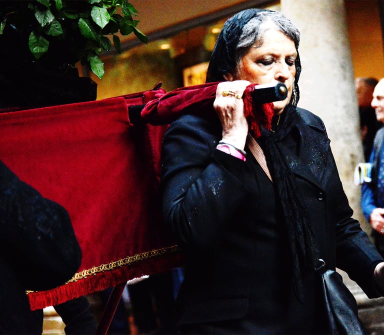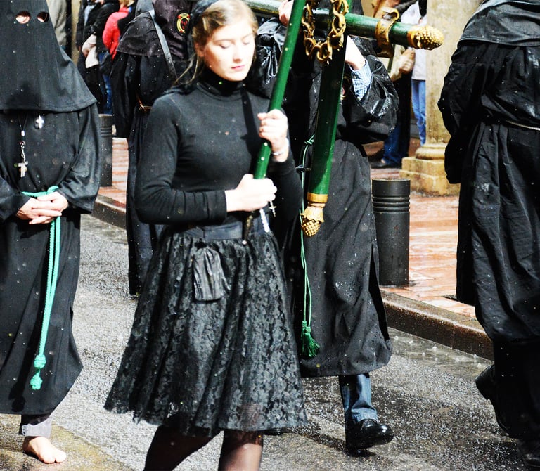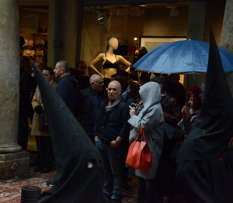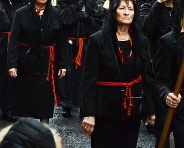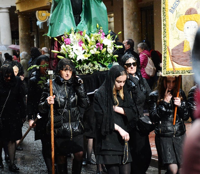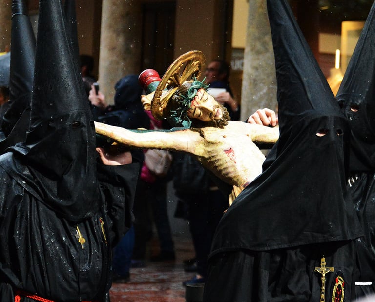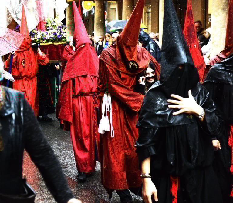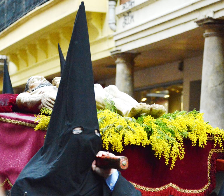 Tous les ans au cours de la semaine Sainte Catholique, le vendredi de la semaine se déroule dans les rues de Perpignan La Sanch. Procession de pénitents portants des fardeaux. Portants de longues capuches pointant vers le ciel. Souvent pieds nus ils défilent au rythme de la cloche de fer du pénitent rouge en tête du cortège. Des roulements de tambours rythmes les haltes de la marche...
