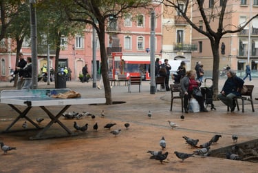 Aquí teniu algunes vistes que intenten capturar la composició geomètrica carrers on es barregen persones, arquitectura i atmosferes.