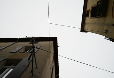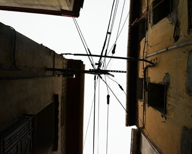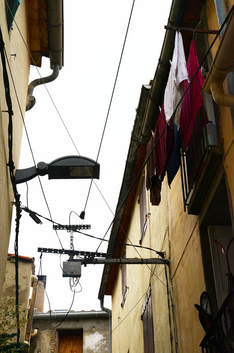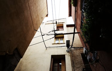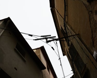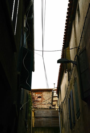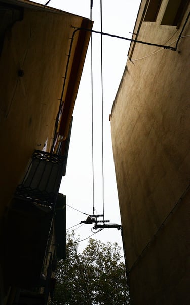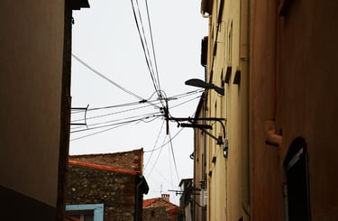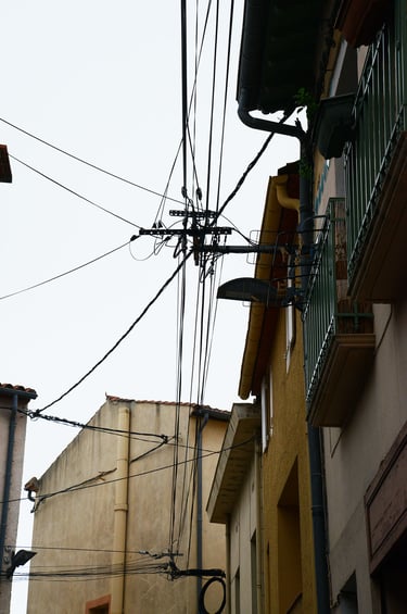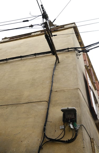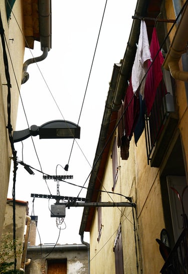 N'étant pas de l'époque des pierres de ces murs du moyen age, ils deviennent une toile d'araignée dérangeante et préoccupante.