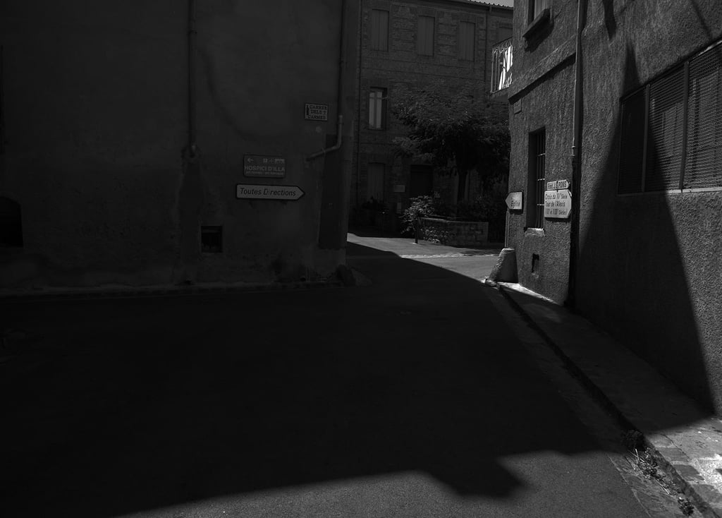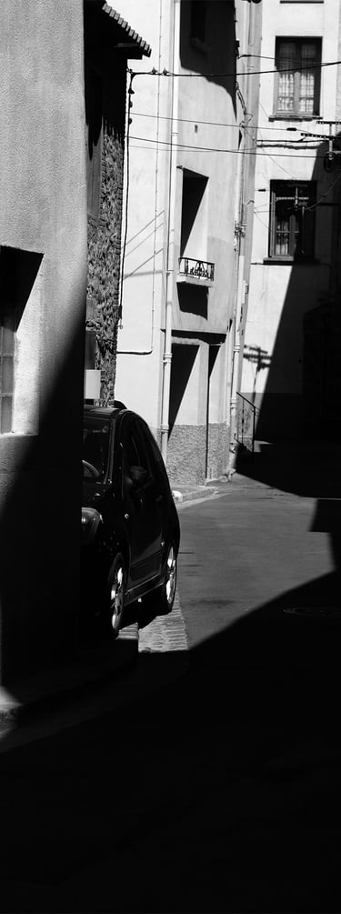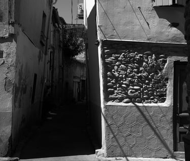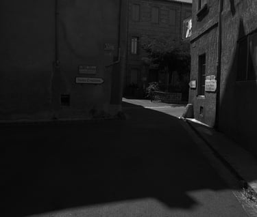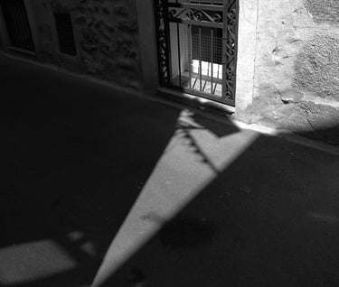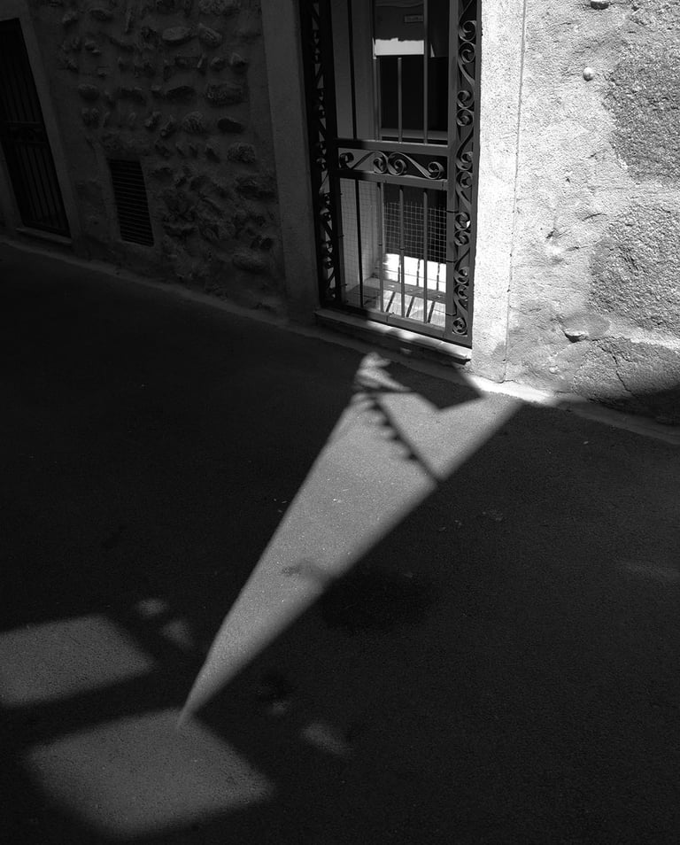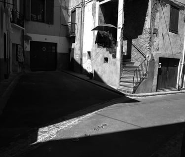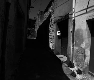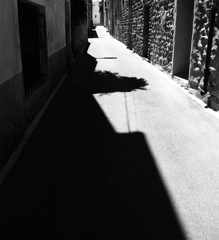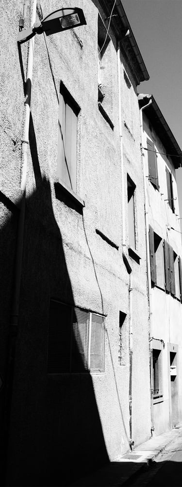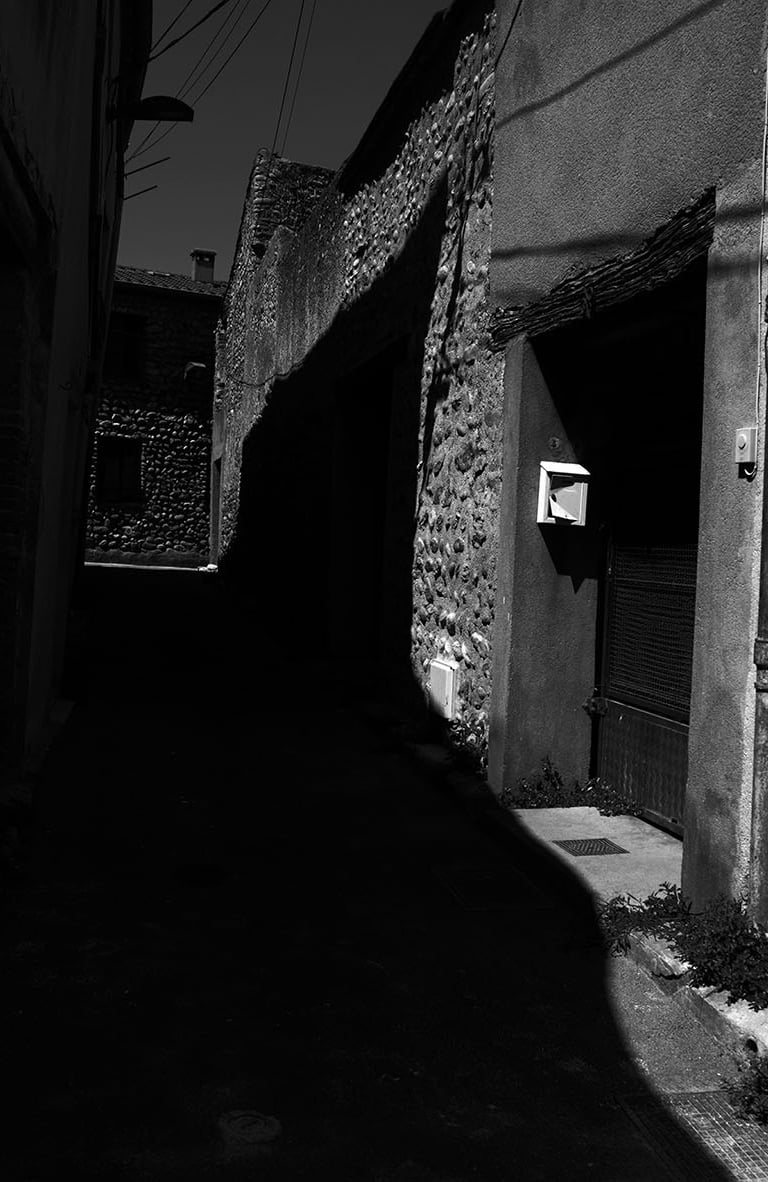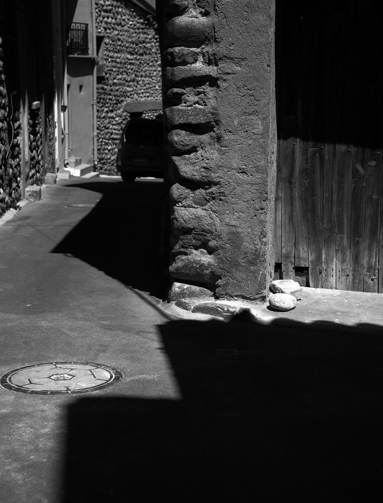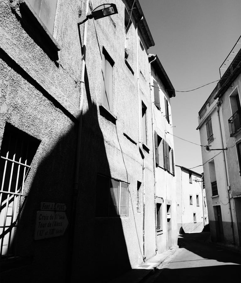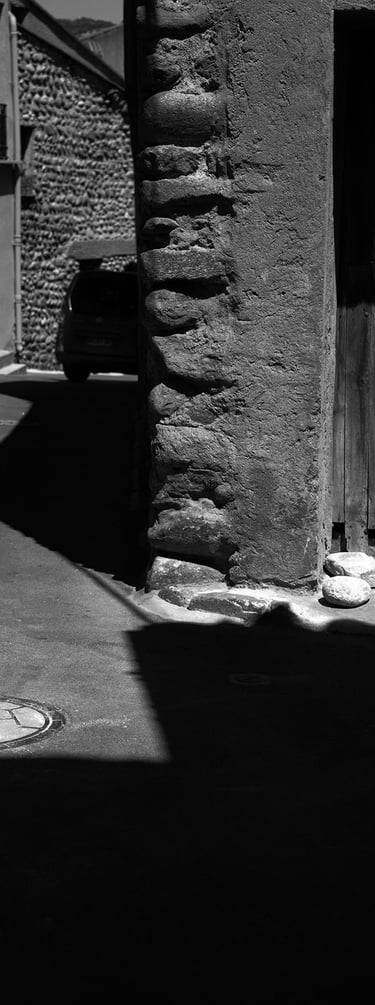 Quand la lumière solaire "caresse" les façades de pierres des maisons Illoise, il se joint dans l'immédiat comme le suivi d'un animal fidèle : l'ombre.