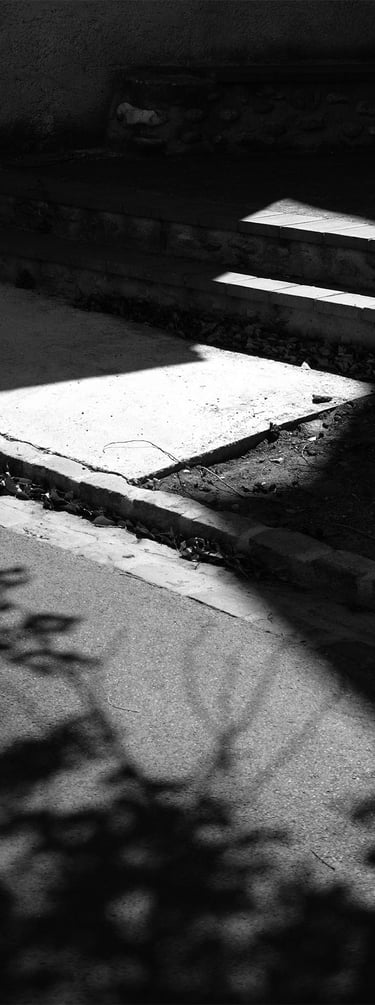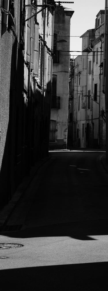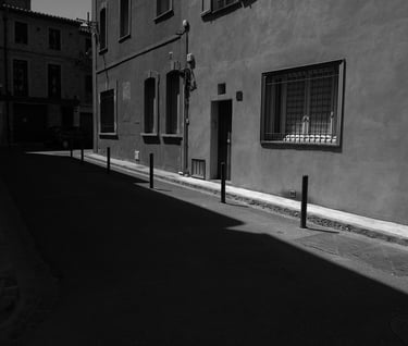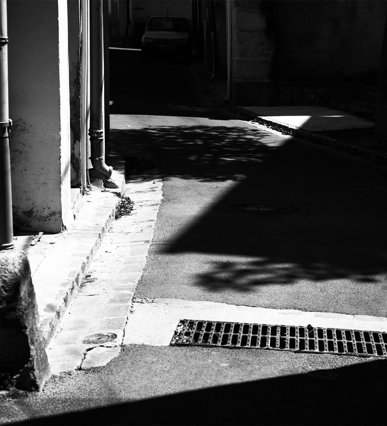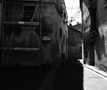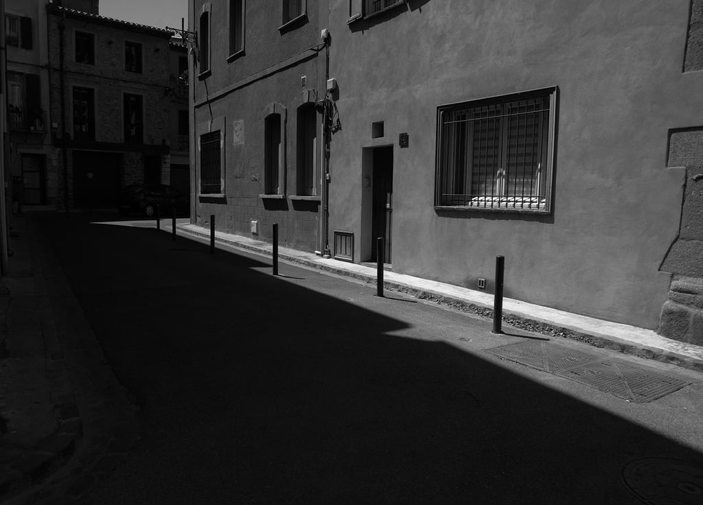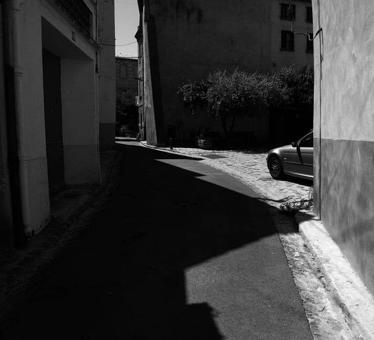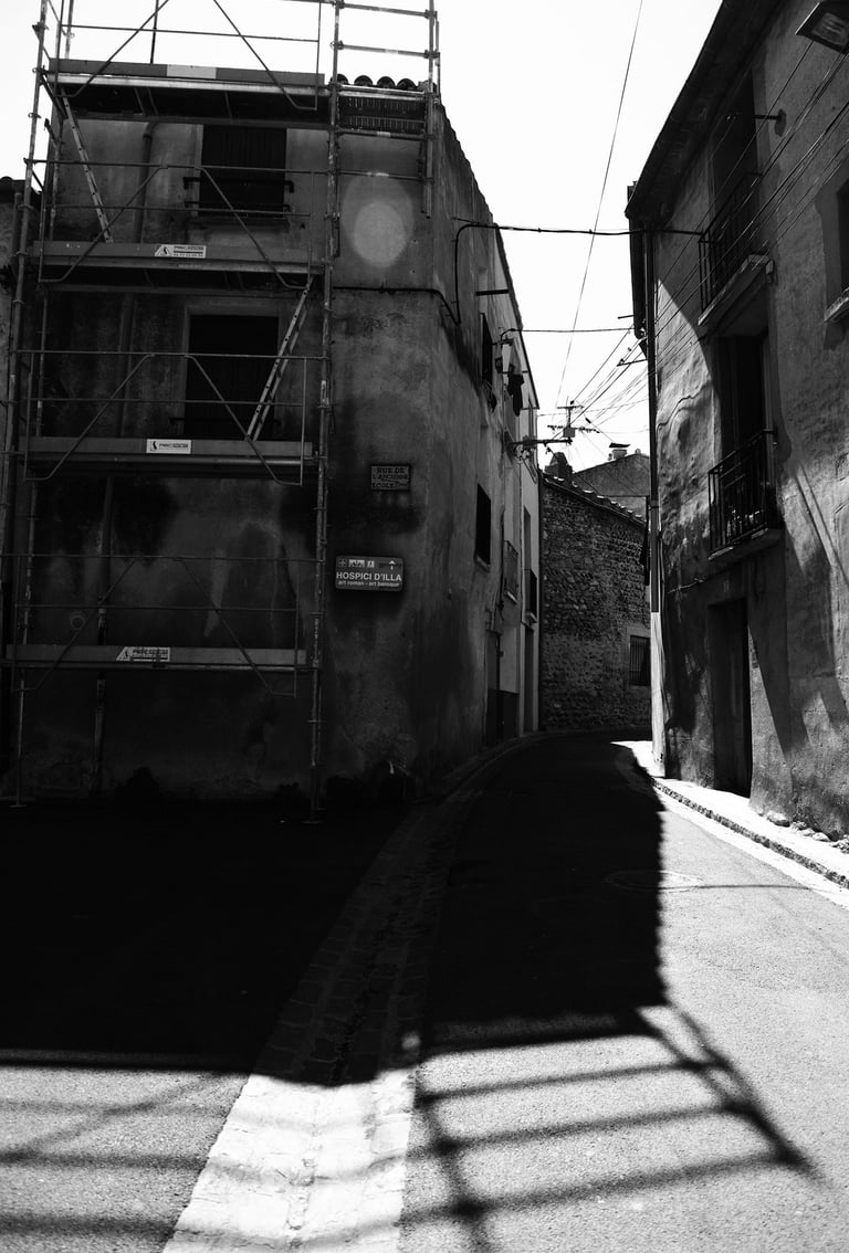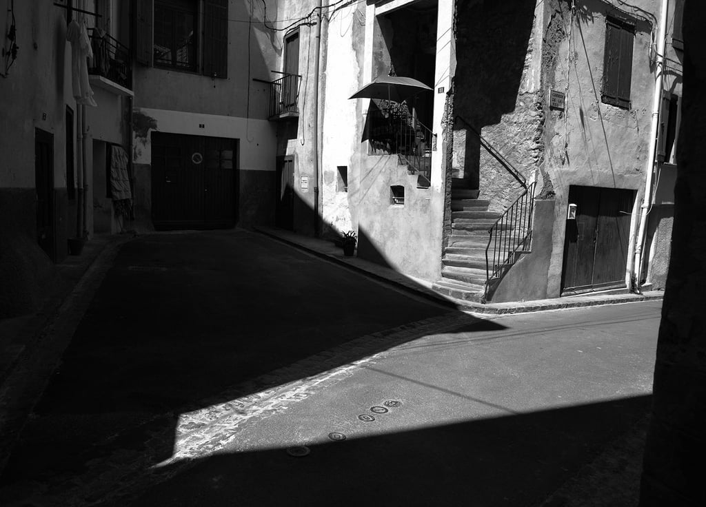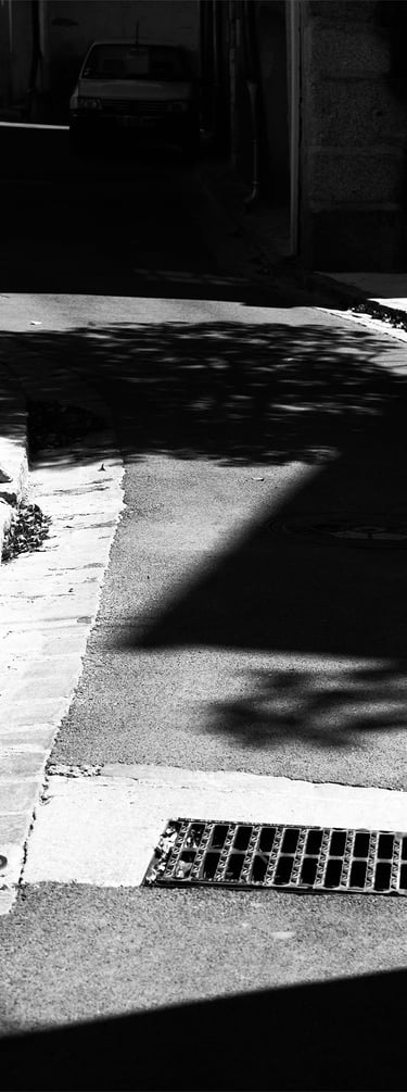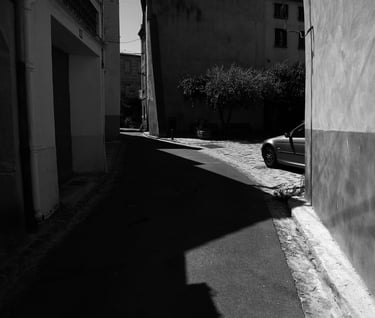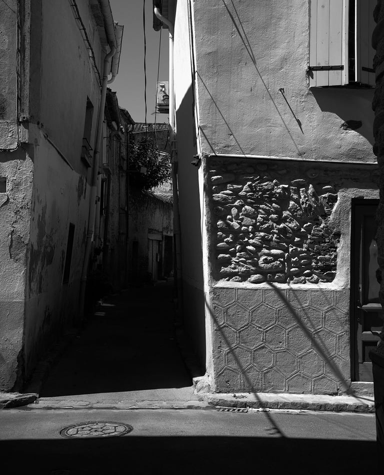 Quand la lumière solaire "caresse" les façades de pierres des maisons Illoise, il se joint dans l'immédiat comme le suivi d'un animal fidèle : l'ombre.